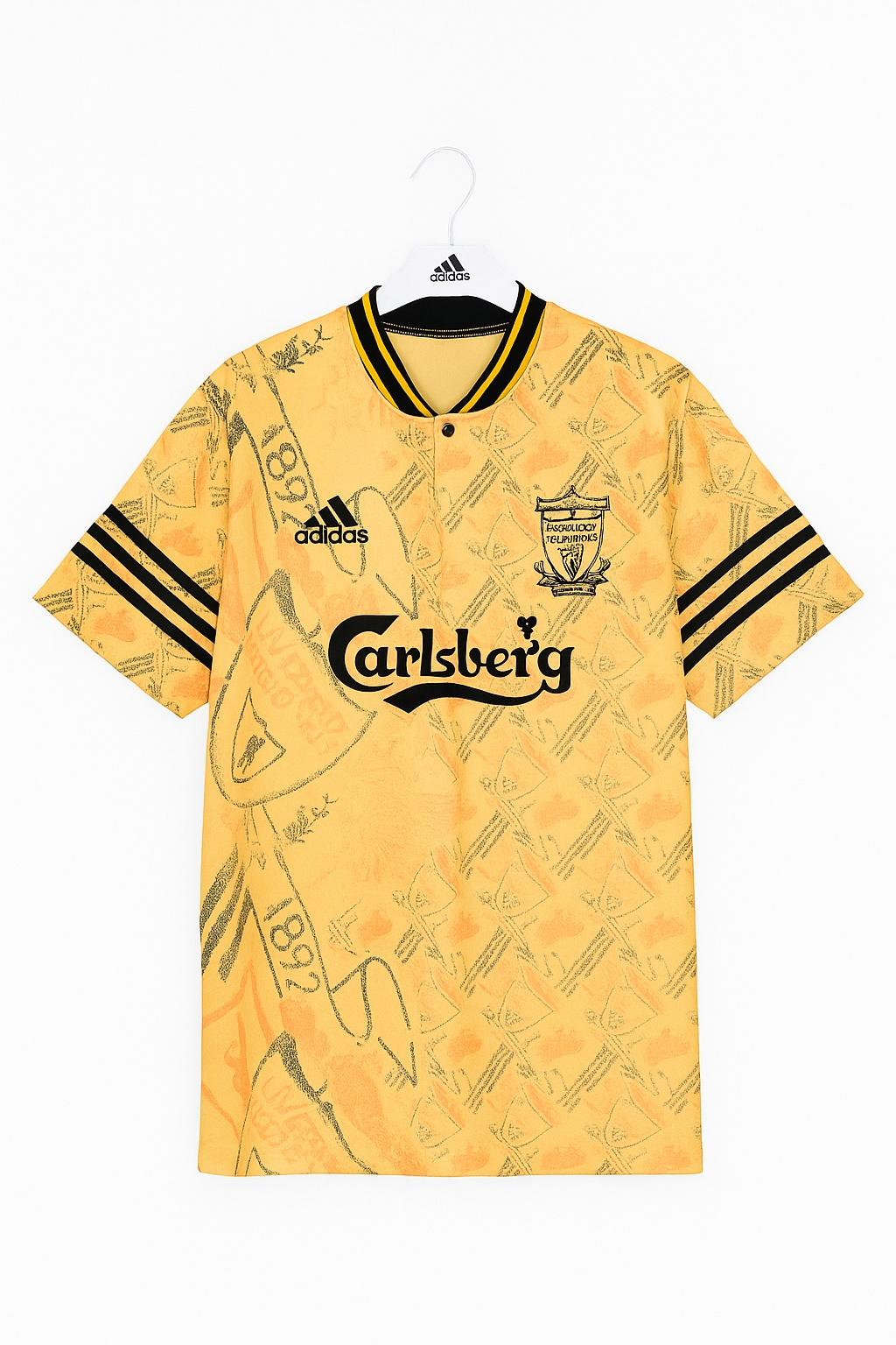Design: Inspired by Liverpool’s iconic 1992 away kit, this jersey features a bold vintage pattern in gold with black accents.